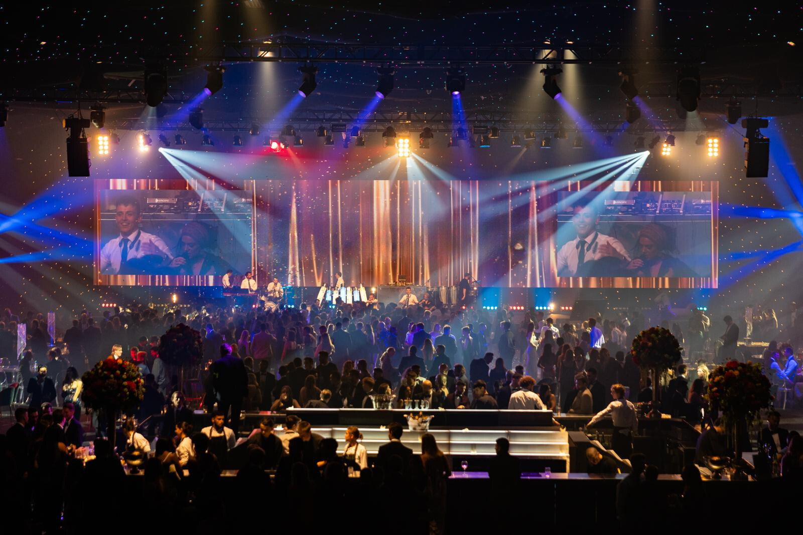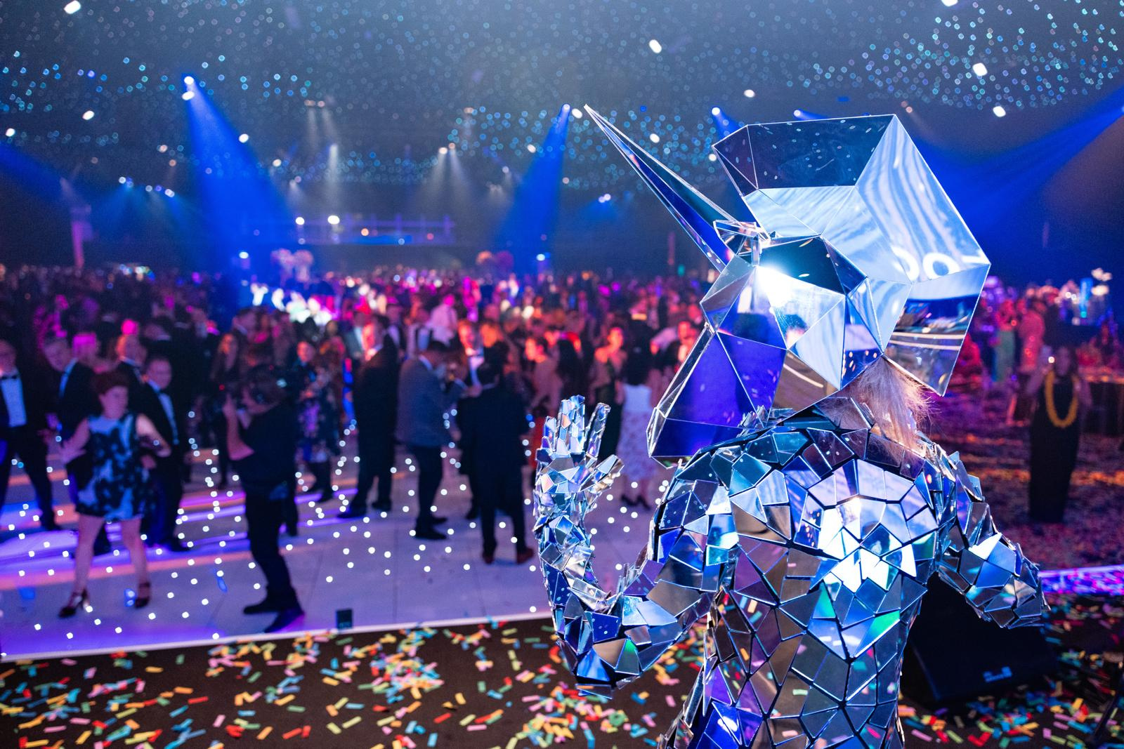 Upon entering the main event space, guests were immediately wowed by a massive LED wall spanning the entire back wall, displaying vibrant images and videos from various cultures and landmarks around the world. The centrepiece was an extra-large mirrored circular bar, creating a visually striking and reflective hub for socializing.