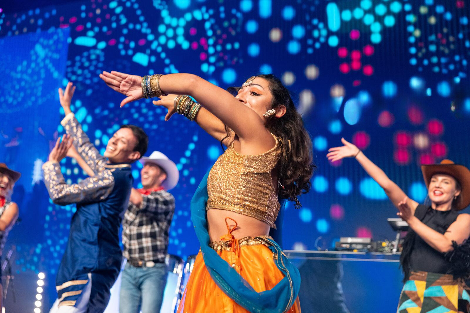 After the meal, the CEO delivered a speech celebrating the company’s cultural diversity and achievements. To close his speech and kick off the party, a lively dance-off was staged. One team of Bollywood-inspired dancers faced off against a team of cowboys and cowgirls performing a hoedown throwdown, energizing the crowd.